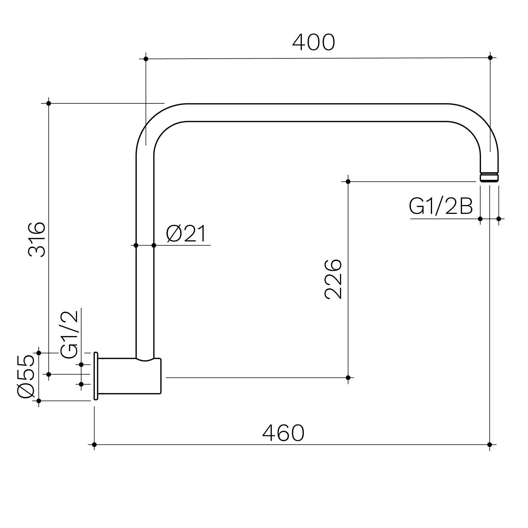 Urbane II 460mm Upswept Shower Arm