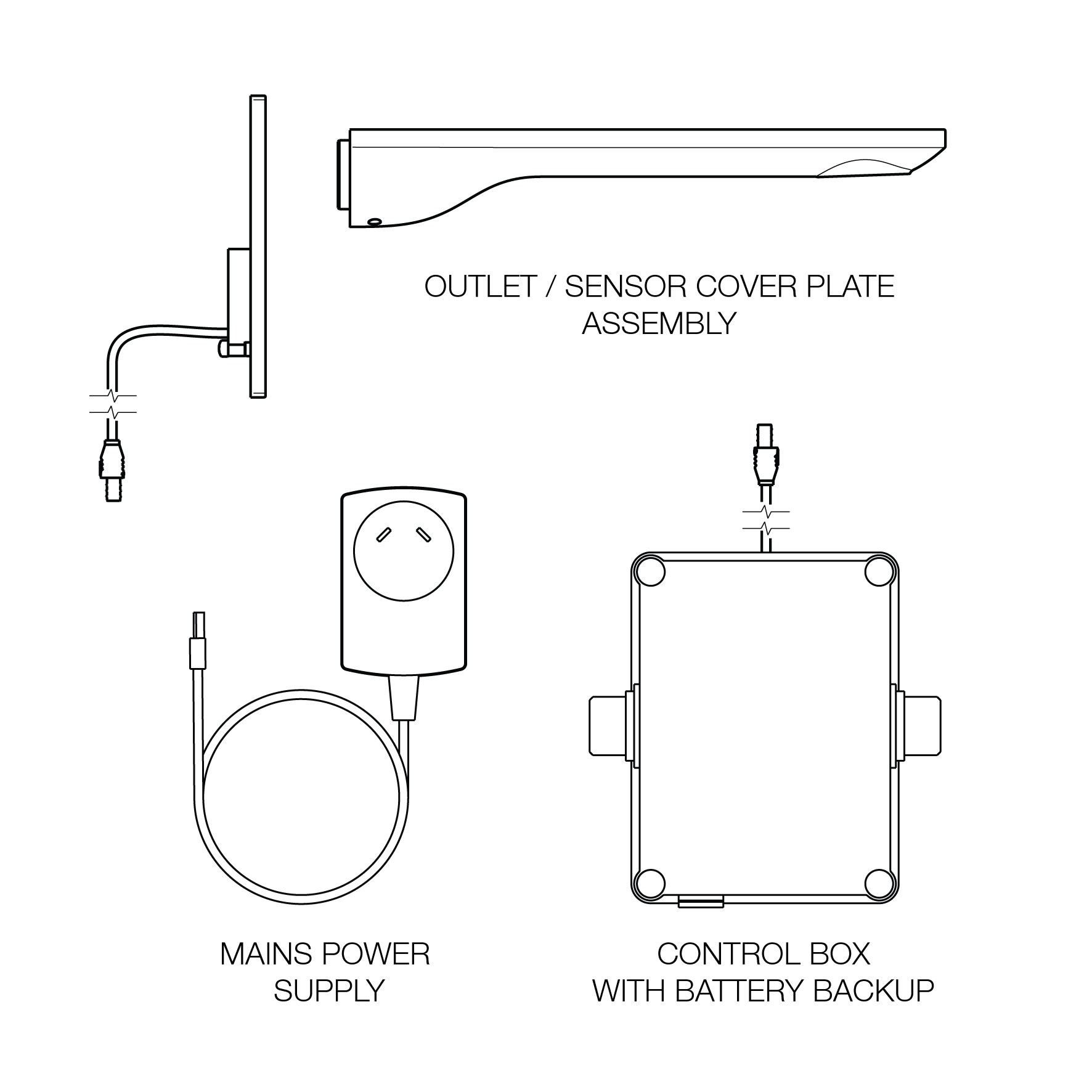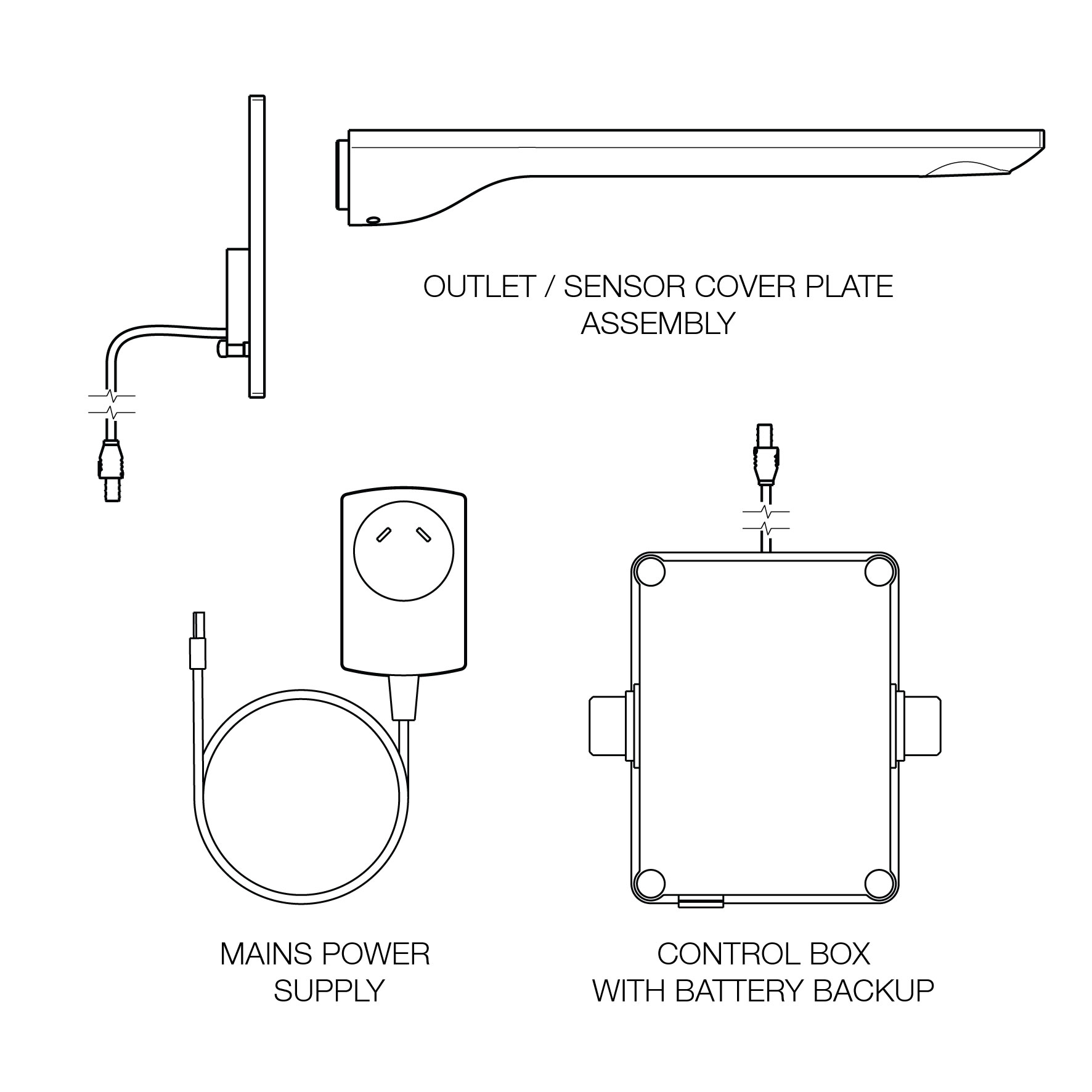 - Dual Power solenoid control box (with IPX4 rated water resistance) which has an integrated battery backup in the event of a power outage